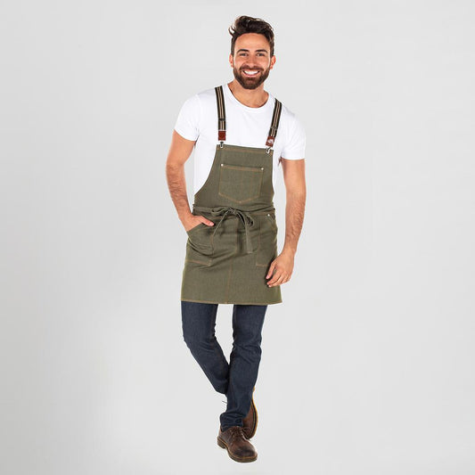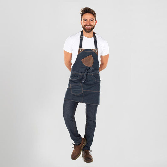 DELANTAL CON PETO Y CINTA DE CUERO 87X73 CM