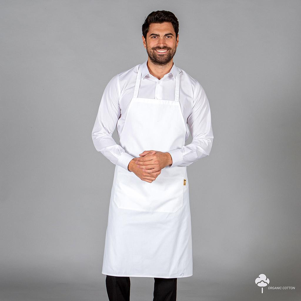 Perfecto para profesionales de la hostelería, camareros de bares, restaurantes y cafeterías, este delantal también es una excelente opción como regalo para el hogar. El Delantal con Peto Tejido Orgánico combina moda y conciencia ambiental para aquellos que buscan calidad y responsabilidad en su vestimenta laboral.